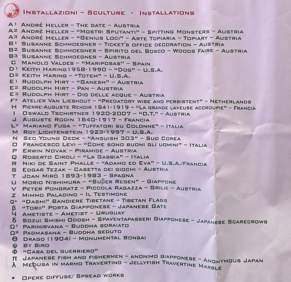 Seguendo il percorso tracciato, è possibile osservare ogni singola pianta e scultura, lasciandosi trasportare dal silenzio e dalla quiete che regna sotto la frescura della vegetazione.